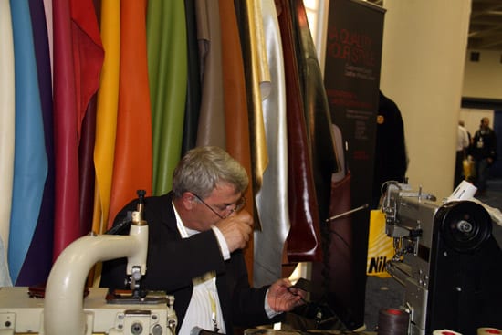 Na prezentácii firmy Sena je zobrazený majster, ktorý priamo pred očami návštevníkov šil púzdra na iPhone.