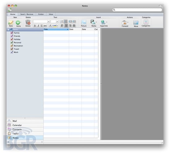 Stránky Boy Genius Report zverejnili prvé screenshoty z balíku kancelárskych aplikácií Microsoft Office 2011 pre Mac, ktorý má byť vydaný neskôr tento rok. V obrázkoch sú viditeľné nové prepracované verzie Wordu, Excelu, PowerPointu a najmä úplne nového Outlooku, ktorý konečne nahradí neobľúbený Entourage.