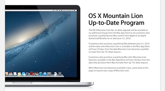 Portál MacRumors včera upozornil, že web OS X Mountain Lion Up-tp-Date programu bol nachvíľu online už s možnosťou zadávať údaje pre získanie “redeem” kódu. Vzápätí bol naspäť nahradený informačnou stránkou, ako bude možné získať 10.8 zadarmo.