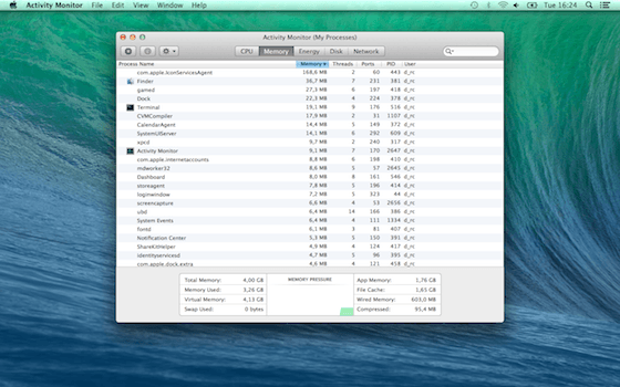 V Mavericks sa môžete priamo z hornej lišty dozvedieť o tom, ktoré aplikácie vyťažujú procesor najviac a teda spotrebúvajú najviac energie. V Activity Monitore nájdete ešte podrobnejšie informácie.
