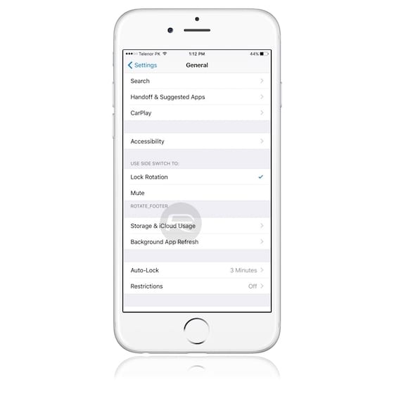 Poznáte z iPadu: v iOS 9 si môžete nastaviť bočný spínač (zvyčajne ho používate na vypnutie zvukov) pre uzamknutie zámku otáčania displeja.
