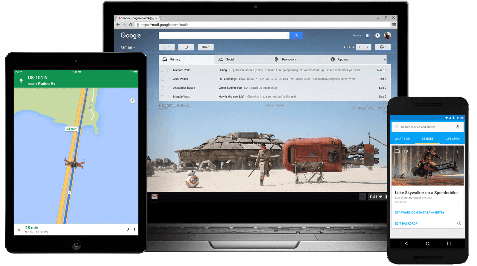 Okrem toho je už teraz dostupné prihlásenie sa do špeciálneho programu cez stránku google.com/starwars, vďaka ktorému je rozhranie aplikácií Google presiaknuté Star Wars svetom. Po prihlásení sa si môžete vybrať medzi Svetlou stranou Sily a Temnou stranou Sily. Na základe výberu sa následne aplikácie ako napríklad Google Mapy, Gmail, Kalendár Google a podobne, či už vzhľadom alebo efektami, zasadia do prostredia Star Wars.