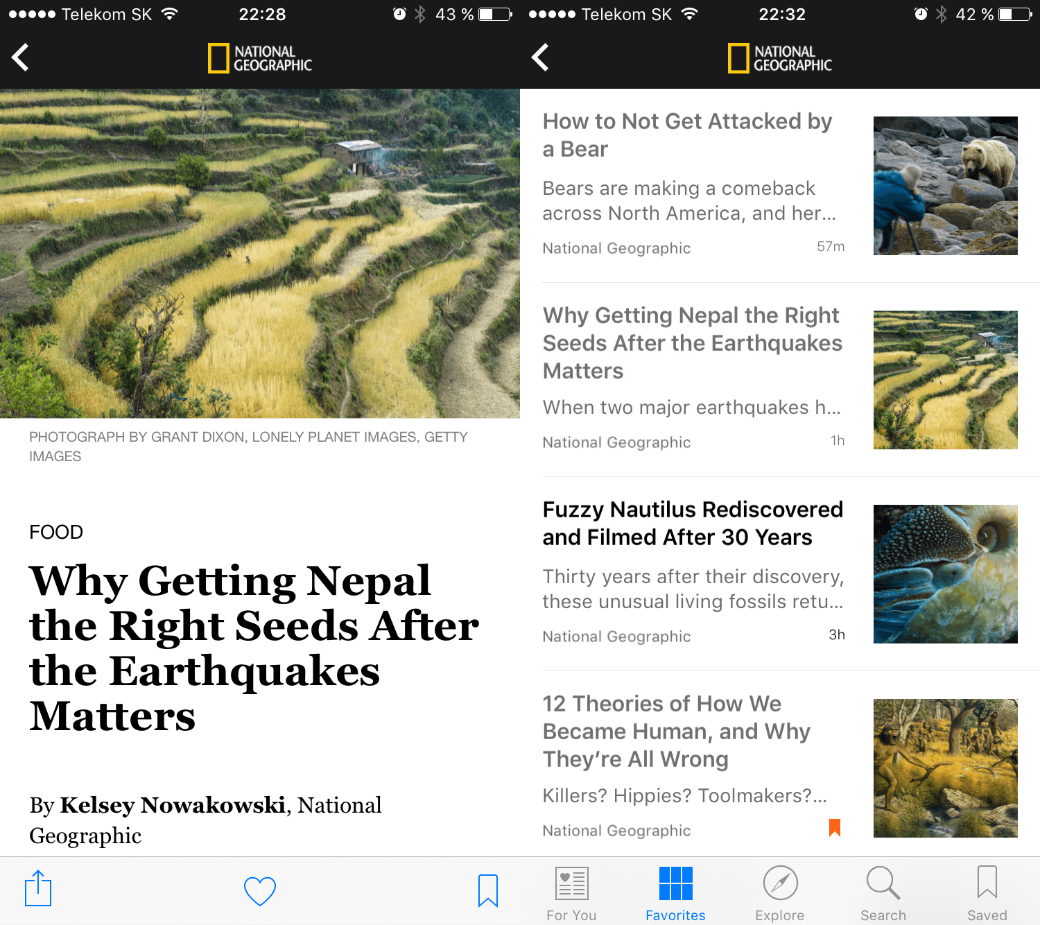 News zatiaľ obsahuje prevažne anglické publikácie, no ponuka je už teraz pomerne široká. Nájdeme tu populárne zahraničné weby ako The Verge, Wired, New York Times, National Geographic a ďalšie. Okrem vybraných publikácií môžete sledovať aj obľúbené témy, na základe čoho vám aplikácia bude v dedikovanej sekcii odporúčať články, ktoré by sa vám mohli páčiť.