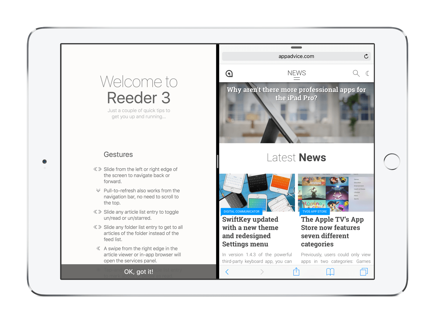 Populárna RSS čítačka pre iOS, Reeder, minulý týždeň dostala očakávaný update na verziu 3.0. Tá pridáva všetky dôležité funkcie predstavené ako súčasť iOS 9. Na iPhone 6s alebo 6s Plus si tak budete môcť prezerať náhľady článkov zo zoznamu pomocu 3D Touch, na podporovaných iPadoch (Air 2, Mini 4, Pro) zas môžete aplikáciu používať v multitasking móde prostredníctvom Split View.