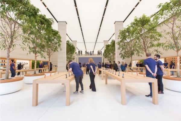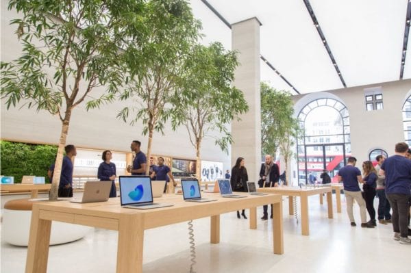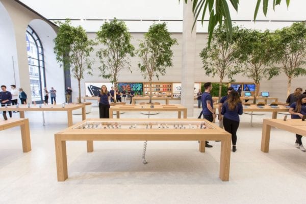 Vlajková loď anglických Apple predajní teraz nesie dizajn novej generácie, ktorý sme mohli vidieť už pred pár mesiacmi v San Franciscu a ostatných lokalitách. Nový vzhľad vytvorený pod taktovkou šéfdizajnéra Jonyho Ivea disponuje veľkými otvorenými priestranstvami, množstvom zelene, drevenými policami, či obrovskou 6K obrazovkou.