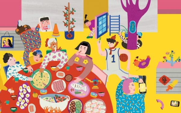 Dílo Joyful Reunions od autorky Eszter Chen zobrazuje moderní novoroční večer. Dílo bylo vytvořeno přímo na iMacu s pomocí Adobe Photoshopu. Eszter vyvořila postavy, které působí trochu zábavným dojmem, a tak trochu dětským stylem. Celý obraz je ve stylu různých vzorů a světlých barev což je pro autorku typické. Obraz nese jednoduché poselství, každá rodina by měla být spokojena jako ta na obrázku.