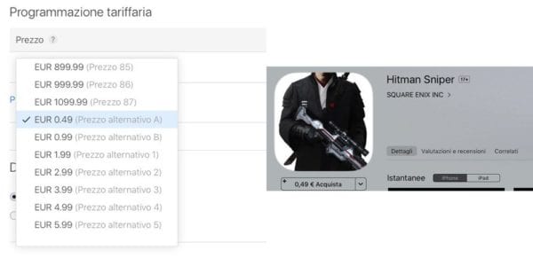 Krom normálních cen lze nastavit „Alternativa k ceně A“, která má hodnotu 0.99 eur a „alternativa k ceně B“, která má hodnotu 0.49 eur. Apple ale jasně řekl, že spodní hranice je pevně stanovena na 1,09 eur, tak jak to tedy je? Kdo ví. Prozatím je zde možnost nastavit pro aplikaci cenu nižší než je tato hranice.