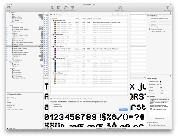 • automatické spúštanie fontov pomocou plug-inov (InDesign, InCopy, Photoshop, Illustrator, QuarkXpress)