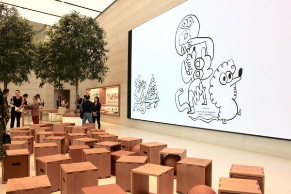 Práve tu sa budú konať pravidelné prednášky a koncerty v rámci novej iniciatívy Today at Apple. Počas mediálnej prehliadky sme tu napríklad mohli nájsť miestnu ilustrátorku, ktorá priebeh svojej kresby streamovala z iPadu na veľkoplošnú obrazovku. “Môžete vojsť dnu a byť inšpirovaný, alebo si kúpiť iPhone; chceme ľuďom ukázať, čo môžu s našimi produktami vytvoriť.” tvrdí Ashley Middleton, riaditeľka programov Today at Apple.