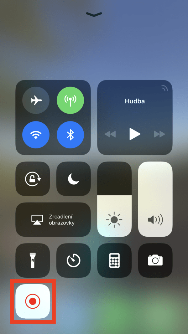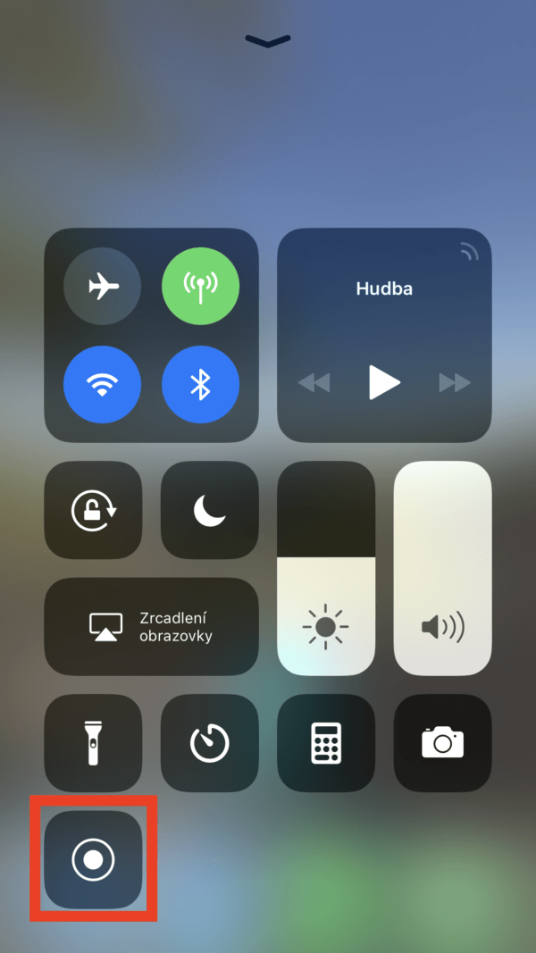 - V ovládacím centru by se nyní měla nacházet nová ikona vyplněného kolečka uvnitř kružnice.