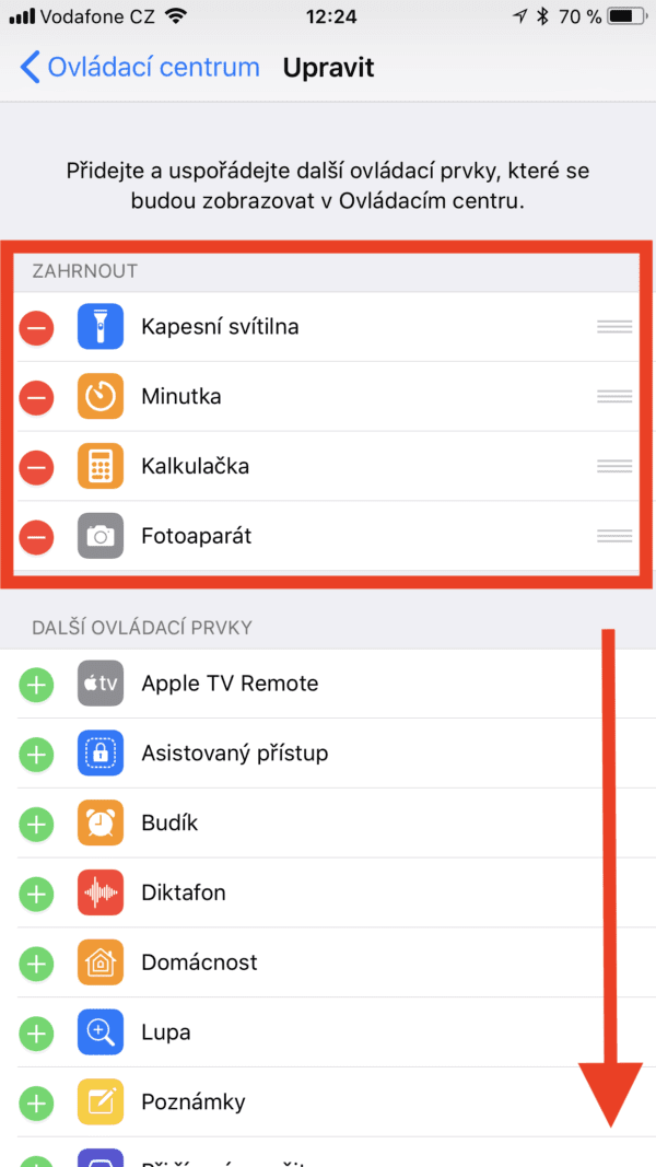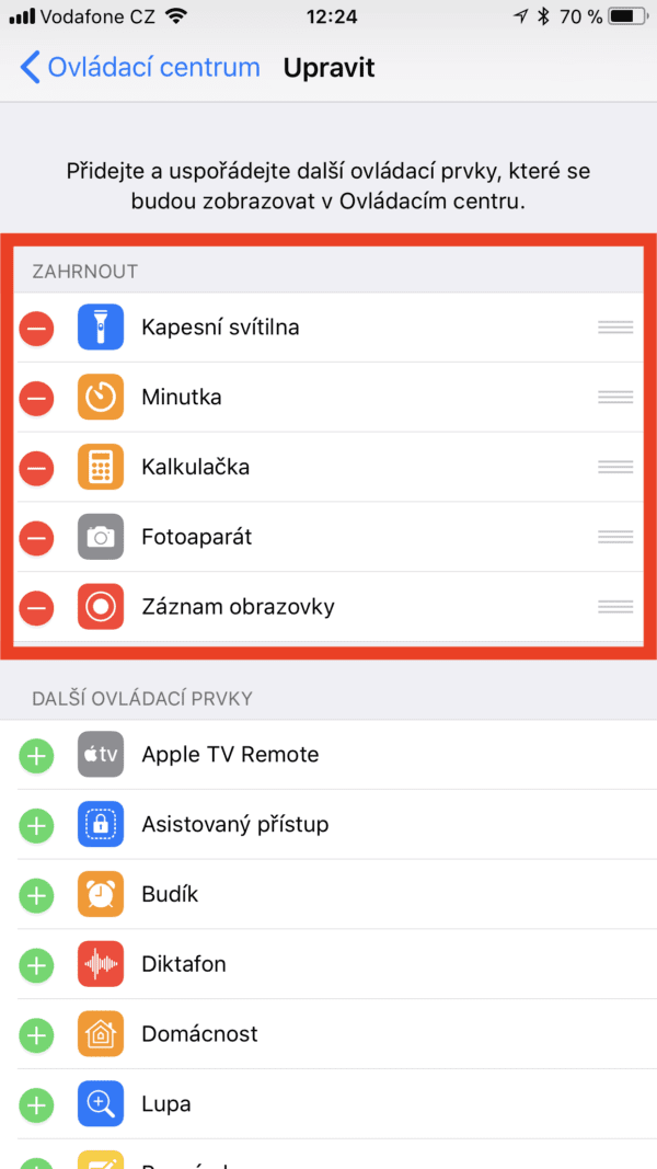 - V kolonce s nápisem „Zahrnout“ se nyní zobrazují položky, které už v ovládacím centru najdeme.