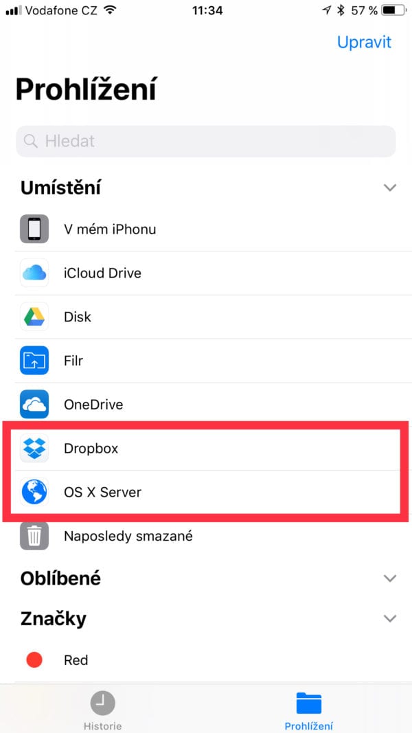• Aplikace Soubory: Nově se v aplikaci Soubory ukazují mezi možnými umístěními i cloudová úložiště „Dropbox“ a „OS X Server„.