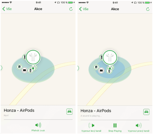 Aplikace vám také umožňuje na sluchátkách přehrát zvuk, který vám při hledání sluchátek pomůže. To je často asi mnohem užitečnější, než zobrazení na mapě, právě kvůli nutnosti připojení pomocí Bluetooth. Na mapě se také ukazuje poslední zaznamenaná poloha. Možné je také přehrát zvuk pouze z jednoho sluchátka, což je užitečné, pokud ztratíte pouze jedno ze sluchátek.