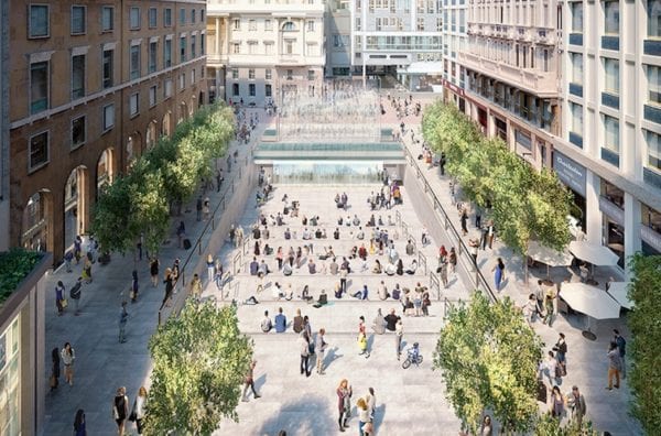 Apple spolupracoval na designu tohoto Apple Storu s architektonickou firmou Foster and Partners. Ta již pomáhala společnosti s většinou projektů nejikoničtějších Apple prodejen. Tato firma dokonce pomáhala projektovat nové budoucí sídlo – Apple Park.