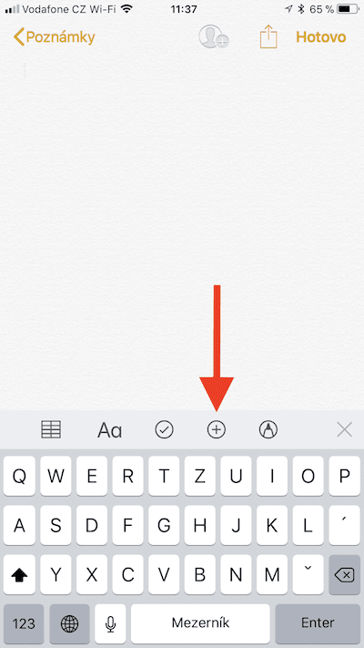2. Otevřete poznámku kam chcete dokument vložit nebo vytvořte novou poznámku.