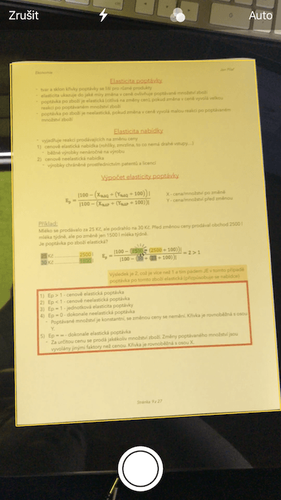 Skener dokumentů v Poznámkách sám detekuje okraje dokumentu a vše podle toho ořízne. Také se snaží o odstranění lesku na dokumentu a dokument správně otočí tak, aby jste vždy dostali co nejčistší sken.