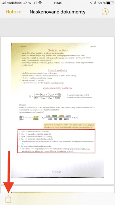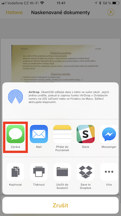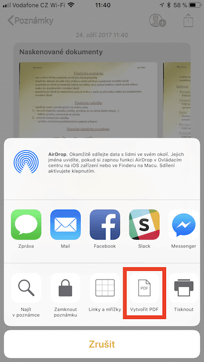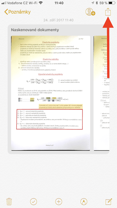 Naskenovaný dokument se vloží do Poznámek, odkud jej můžete ještě zpětně upravovat nebo sdílet. My se podíváme na možnost jak ze skenu udělat dokument PDF, který pak můžete komukoliv odeslat.