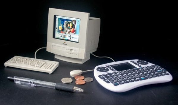 S ovládacími prvky si zas tak velikou lavu nedělal. Než aby používal jakousi miniaturní myš, využil novodobé Bluetooth technologie a připojil klasickou klávesnici i s myší.