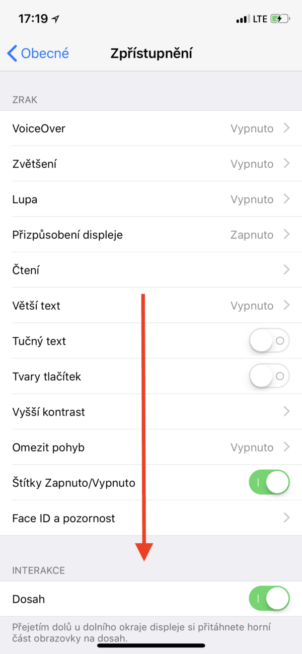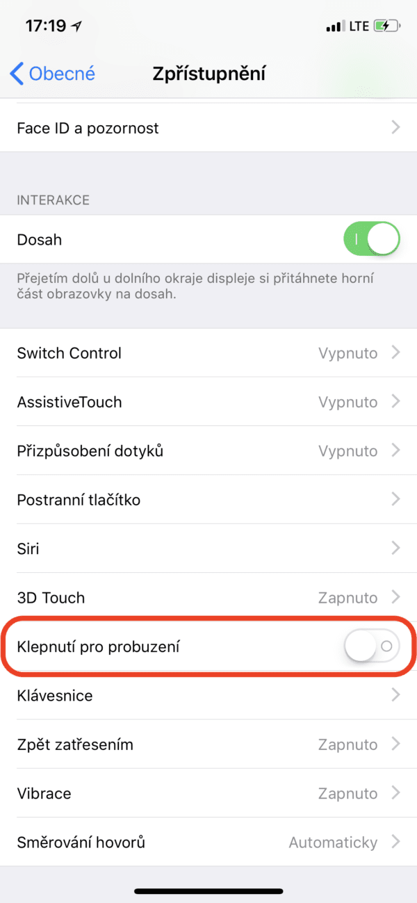 Stačí, když otevřete aplikaci „Nastavení“ a rozklepnete záložku „Obecné„. V té potom naleznete další záložku „Zpřístupnění„. Na tu klepněte a poté sjeďte do druhého bloku možností s nadpisem „Interakce„. Jako 8. možnost v tomto bloku je možnost vypnout funkci „Klepnutí pro probuzení„. Po deaktivaci této funkce (přepínač je bílý, nikoliv zelený) se už můžete zhasnutého iPhonu omylem dotýkat jak jenom chcete. Displej tím ale neprobudíte.