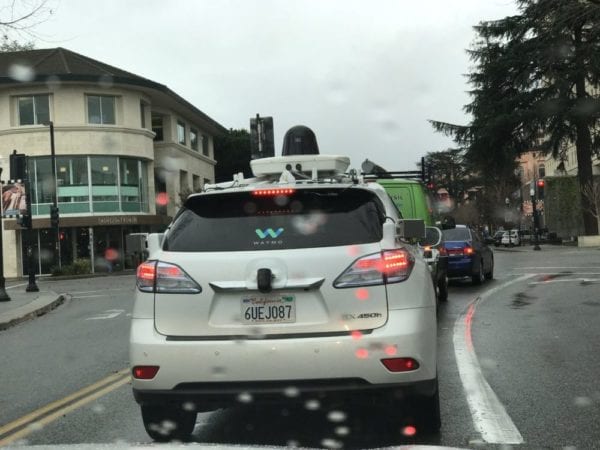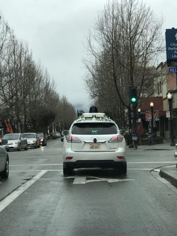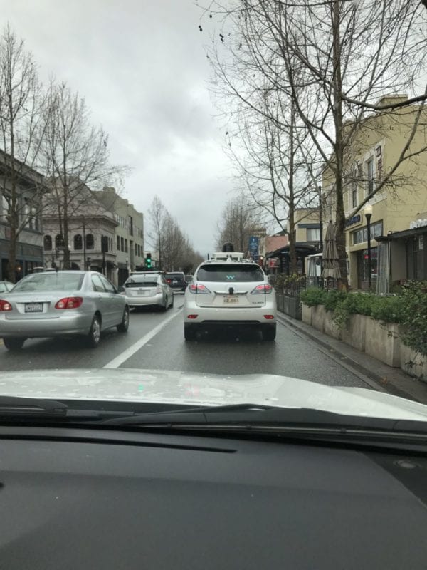 Phoenix však není jediným městem, ve kterém jsou automobily Waymo testovány. Během mé dovolené v Kalifornii jsem toto vozidlo spatřil hned dvakrát. Vždy v okolí Silicon Valley – poprvé přímo na parkovišti centrály Applu, což je poněkud zvláštní. A podruhé na silnicích „městečka“ Mountain View, tedy poblíž centrály Googlu. Fotky najdete níže.