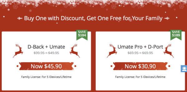 Prvým takýmto balíkom je iMyFone D-Back, softvér na obnovu stratených alebo zmazaných iOS dát (štandardne 99,95 USD) a iMyFone Umate, profesionálny nástroj na správu úložného priestoru na iOS zariadení (štandardne 49,95 USD) – to všetko len za 45,9 USD, pričom v tejto cene dostanete doživotné licencie pre celú vašu rodinu (až na 5 zariadení).