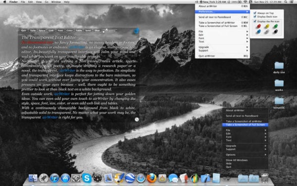AirWriter je elegantný, viacúčelový textový editor s transparentným pozadím, takže pri písaní vidíte vašu pracovnú plochu ale i všetky spustené aplikácie.