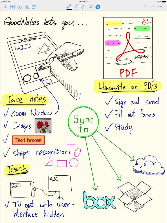 GoodNootes vám umožní zapisovať si poznámky. Aplikácia je zvlášť užitočná v kombinácii iPad Pro a Apple Pencil. Samozrejmosťou je synchronizácia pomocou iCloudu.