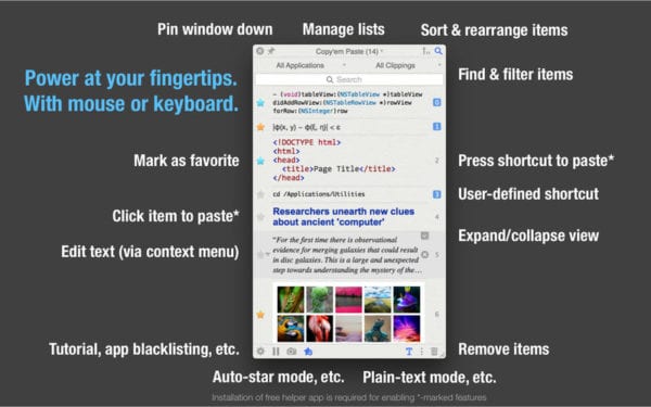 Aplikácia Copy’em Paste je produktívny pracovný nástroj, ktorý automaticky uchováva váš kopírovaný text, obrázky, odkazy, snímky obrazovky a ďalší obsah schránky a umožňuje vám ich kedykoľvek opätovne vložiť. Použite ho na kopírovanie a vkladanie položiek v dávkach a minimalizujte prepínanie sa medzi aplikáciami. Aplikácia vám umožní ušetriť množstvo času, ponúka množstvo funkcií a má jednoduché používateľské rozhranie.