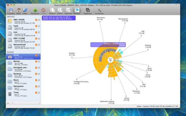 Aplikácia WhatSize analyzuje pevný disk a automaticky zobrazí všetky súbory podľa ich veľkosti. Zároveň vizuálne zobrazí obsahu pevného disku, čo vám umožní identifikovať súbory, ktoré zaberajú najviac miesto. Ponúka inteligentné nástroje, ktoré navrhujú ako môžete získať viac voľného miesta.