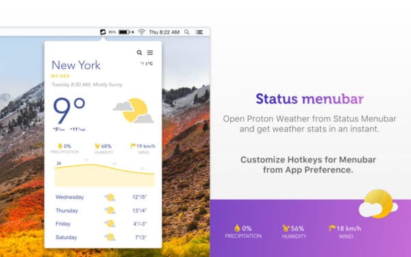 Aplikácia Proton Weather vám prinesie na obrazovky Macu informácie o počasí. Proton Weather je dostupný aj z menu baru, kde zobrazuje aktuálne počasie.