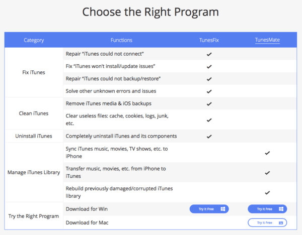 Ide o primárne riešenie všetkých iTunes chýb a problémov. Dokáže opraviť viac ako sto iTunes problémov týkajúcich sa inštálácie, pripojenia, obnovenia, zálohovania a podobne. Problémy dokáže riešiť bez akejkoľvek straty dát a navyše dokáže iTunes vyčistiť tak, aby ste ušetrili miesto na vašom disku a získali tak viac priestoru a výkonu pre ostatné aplikácie.