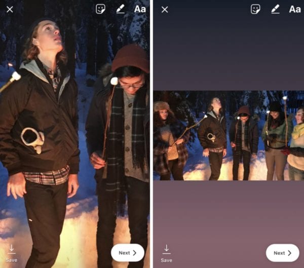 Druhá funkce, která je dle našeho názoru rozhodně zajímavější, je funkce, která by dle slov Instagramu měla pomoci s vlkládáním obrázků, které zrovna nejsou v poměru 9:16, ted tom, ve kterém se standartně obrázky a videa na IG stories zobrazují.