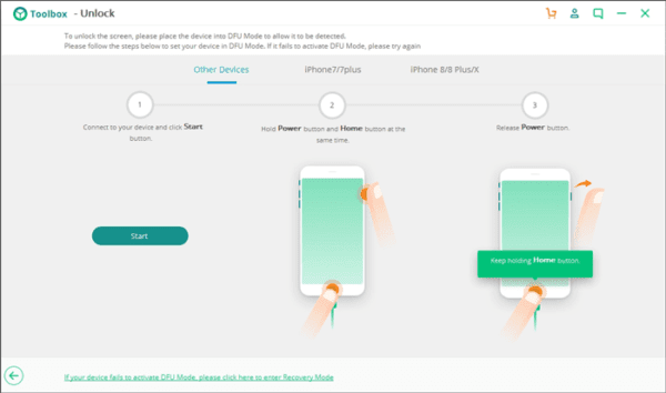 Krok 3 – teraz musíte reštartovať váš iPhone do DFU módu. iSkysoft Toolbox vám dá inštrukcie ako na to.