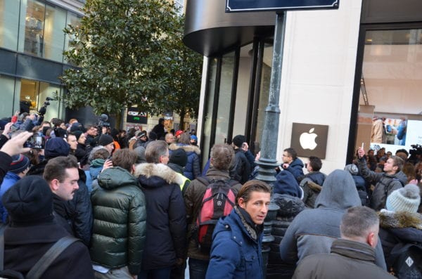 Ako pri každej takejto ceremónii sa u Applu nejedná iba o otvorenie dverí a vpustenie zákazníkov bez akejkoľvek organizácie. Všetko sa to začalo už vonku. Keďže bola ulica už hneď ráno plná ľudí (nie len tých čo čakali na otvorenie, ale aj tých čo len tak išli okolo), vyzeralo by to tam celkom chaoticky bez akéhosi “usmernenia” čakajúcich zákazníkov. Práve preto boli postavené oplotenia, ktoré vytvárali rad pre čakajúcich ľudí – podobne ako s páskami na letisku, aby si ľudia navzájom neprekážali.