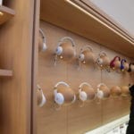Tam sa nachádzajú stoly pre riešenie problémov s produktami, odbornú pomoc od Apple zamestnancov a čo nesmieme opomenúť, príslušenstvo ako napríklad káble, AirPods, atď. Po miestnosti sa nachádzajú aj zaujímavé dizajnérske kusy, ako napríklad živá rastlinná stena, geometricky usporiadané obaly pre iPhone a náramky pre Apple Watch.