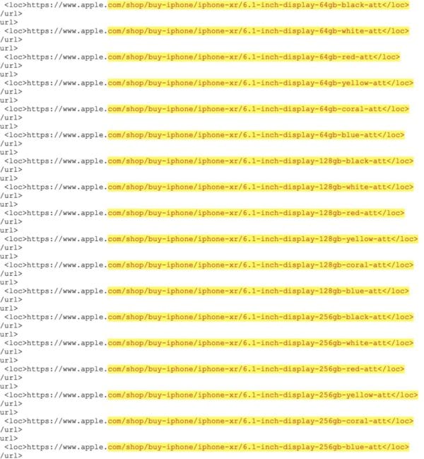 Dále sitemapa ještě odhlalila všechny barevné varianty a možnosti úložiště nového iPhonu XS a XS Max. Tyto dva modely si budete moci objednat s úložištěm 64, 256 nebo 512GB. Co se týče barev, tato zařízení bude možné zakoupit ve vesmírně šedé, stříbrné nebo zlaté barvě.