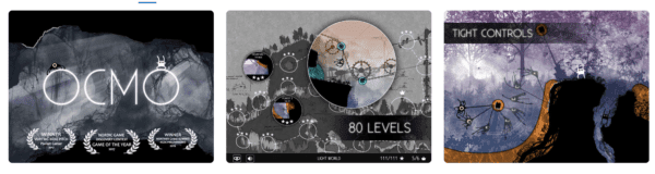 Ocmo je plošinovka, ktorej hrateľnosť je založená na fyzike. Hra ponuka 80 levelov, plných tajomstiev a súbojov s bossmi.