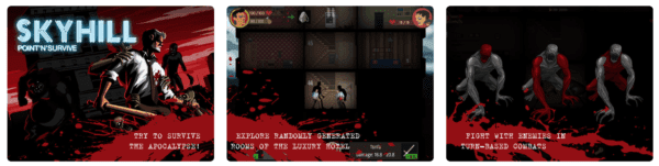 3. svetová vojna bola krutá tragédia, aspoň pre ostatných. Vám sa celkom darilo v úkryte vo svojom fajnovom bytu v Hoteli Skyhill, až do vplyvu biologické zbrane, ktorá zmenila všetko. Teraz sú všade mutanti a s nadšením vás roztrhajú na kúsky pomocou svojich desivých pazúrov. Ale nie sú jediným vaším problémom: dochádzajú vám zásoby. Musíte opustiť svoj luxusný podkrovný byt. SKYHILL je hra s RPG prvkami, v ktorej budete vylepšovať svoje schopnosti a zbrani a hľadať užitočné predmety.