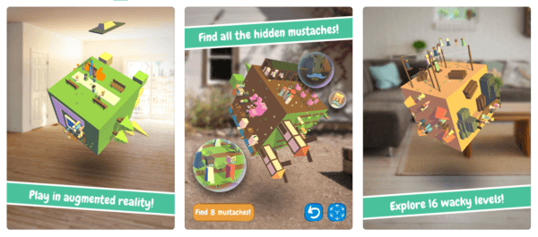 Find the Mustache je hra v rozšírenej pre celú rodinu. Stačí len váš iPhone alebo iPad nasmerovať na podlahu alebo stôl a môžete začať s hľadaním.