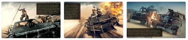 Hra Mad Max prináša otvorený svet v post-apokalyptickom svete, kde jedinou šancou na prežitie sú autá. Hráči prevezmú úlohu Mad Maxa, osamelého bojovníka, ktorý musí bojovať o prežitie s divokými gangmi banditov. Pretože Maxovi ukradnú jeho ikonické auto Interceptor, Max sa musí dať dohromady s talentovaným, ale podivným mechanikom Chumbucketom a ďalšími, aby zostavil špeciálne vojenské vozidlo a pomocou neho utiekol z Pustiny.