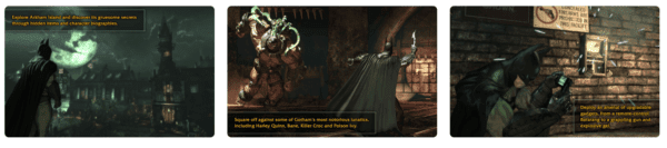 Príbeh nás zavedie do vnútra Arkhamského útulku – gothamskej psychiatrickej liečebne. Vstúpte s netopierim mužom do temného sveta plného šialenstva. Obávaný Joker uvádza do života svoj nejďiabelskejší plán. Batman sa vďaka hrám vyšinutého klauna bude musieť vysporiadať aj so starou známou spodinou Gothamu.