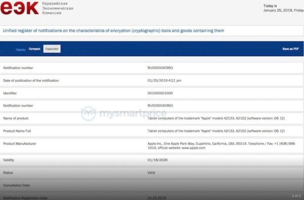 Registrace modelů zařízení u Eurasijské Ekonomické Komise již v minulosti úspěšně předpověděly vydání nových Apple produktů, včetně vydání několika iPadů a iPadů Pro, iPhonu 7 a 7 Plus, Apple Watch Series 2 a Series 4, AirPods a MacBooku Pro s Touch Barem z roku 2018. Je proto velká pravděpodobnost, že i tyto modelová čísla budou pravdivá a nových iPadů se dočkáme již brzy – dost možná v březnu (marec), což je měsíc, kdy Apple často nové iPady odhaluje. Aktualizace iPadu mini jsme se nedočkali už od září roku 2015, proto je opravdu možné, že jeden z iPadů, který Apple letos představí, opravdu bude nový iPad mini.