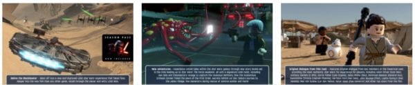 Prostredníctvom LEGO Star Wars: The Force Awakens sa ponoríte do nového filmu hlbšie než kedykoľvek predtým. Môžete sa tešiť na všetkých známych hrdinov, medzi ktorými nechýbajú napríklad Rey, Finn, Poe Dameron, Han Solo, Chewbacca, C3PO, BB-8, Kylo Ren, generál Hux, alebo kapitánka Phasma. Môžete sa s nimi pustiť do preskúmania známych lokalít zo sveta Star Wars, ako sú Jakku a základňa Starkiller.