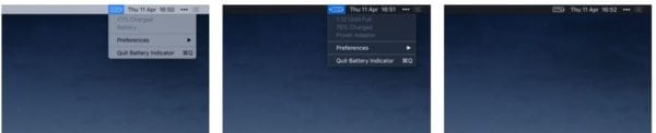 Aplikácia Battery Indicator ukazuje zostávajúce percentá a čas do vybitia batérie. Aplikácia môže byť užitočná pre majiteľov Macov s macOS Siera 10.12.2 a novším, kedže Apple sa rozhodol túto informáciu odstrániť s operačného systému.