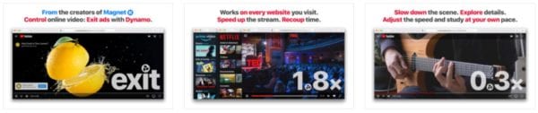 Dynamo je doplnok do internetového prehliadača Safari, ktorý umožňuje kontrolovať rýchlosť prehravaného videá.