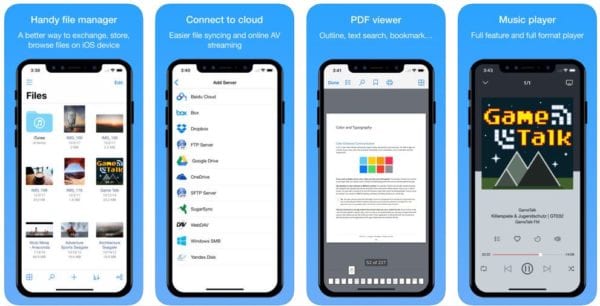 File Hub Pro je komplexný správca súborov pre iOS zariadenia. Aplikácia spolupracuje so všetkými populárnymi cloudovými službami ako: iCloud, Google drive, Dropbox, Box, OneDrive, podporuje protokoly na lokálny prenos súborov:FTP, SFTP, WebDAV a Windows SMB. Dokáže rozbaľovať archívy: ZIP, RAR, 7-zip, CBZ, CBR, TAR, BZ2, GZ. Navyše je to ešte aj textový editor, prehrávač video a audio súborov, čítačka PDF súborov…
