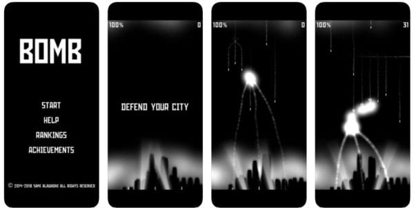 Bomb je jednoduchá hra, v ktorej máte za úlohu ochrániť vaše mesto pre padajúcimi bombami pomocou riadených striel.