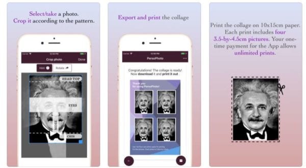 Potrebujete fotku na doklady ale nechce sa vám ísť k fotografovi? Tak potom je tu aplikácia PersoPhoto. Do aplikácie stačí importovať fotku, na ktorej je zachytená vaša tvár a orezať ju. PersoPhoto potom vytlačí koláž so štyrmi fotografiami.