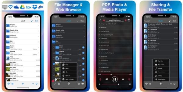 File Hub Pro je komplexný správca súborov pre iOS zariadenia. Aplikácia spolupracuje so všetkými populárnymi cloudovými službami ako: iCloud, Google drive, Dropbox, Box, OneDrive, podporuje protokoly na lokálny prenos súborov:FTP, SFTP, WebDAV a Windows SMB. Dokáže rozbaľovať archívy: ZIP, RAR, 7-zip, CBZ, CBR, TAR, BZ2, GZ. Navyše je to ešte aj textový editor, prehrávač video a audio súborov, čítačka PDF súborov…