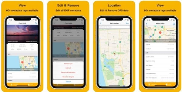 Aplikácia Power Exif-Photo Exif Viewer je určená pre fotografov. Poskytuje informácie o fotografiách. Umožňuje napríklad upravitť alebo odstrániť EXIF metadata, ktoré obsahujú GPS súradnice miesta, kde bola fotografia zhotovená. Ďalej zobrazuje EXIF tagy ako ISO, rýchlosť uzávierky, model fotoaparátu …